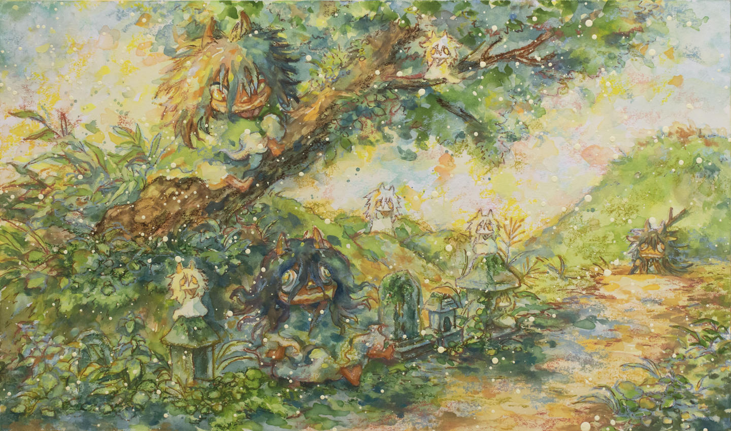 描かれたこの存在たち「ガミ」は目に見えない力であり、いつも私たちのそばにいる特別で身近な存在たちです。