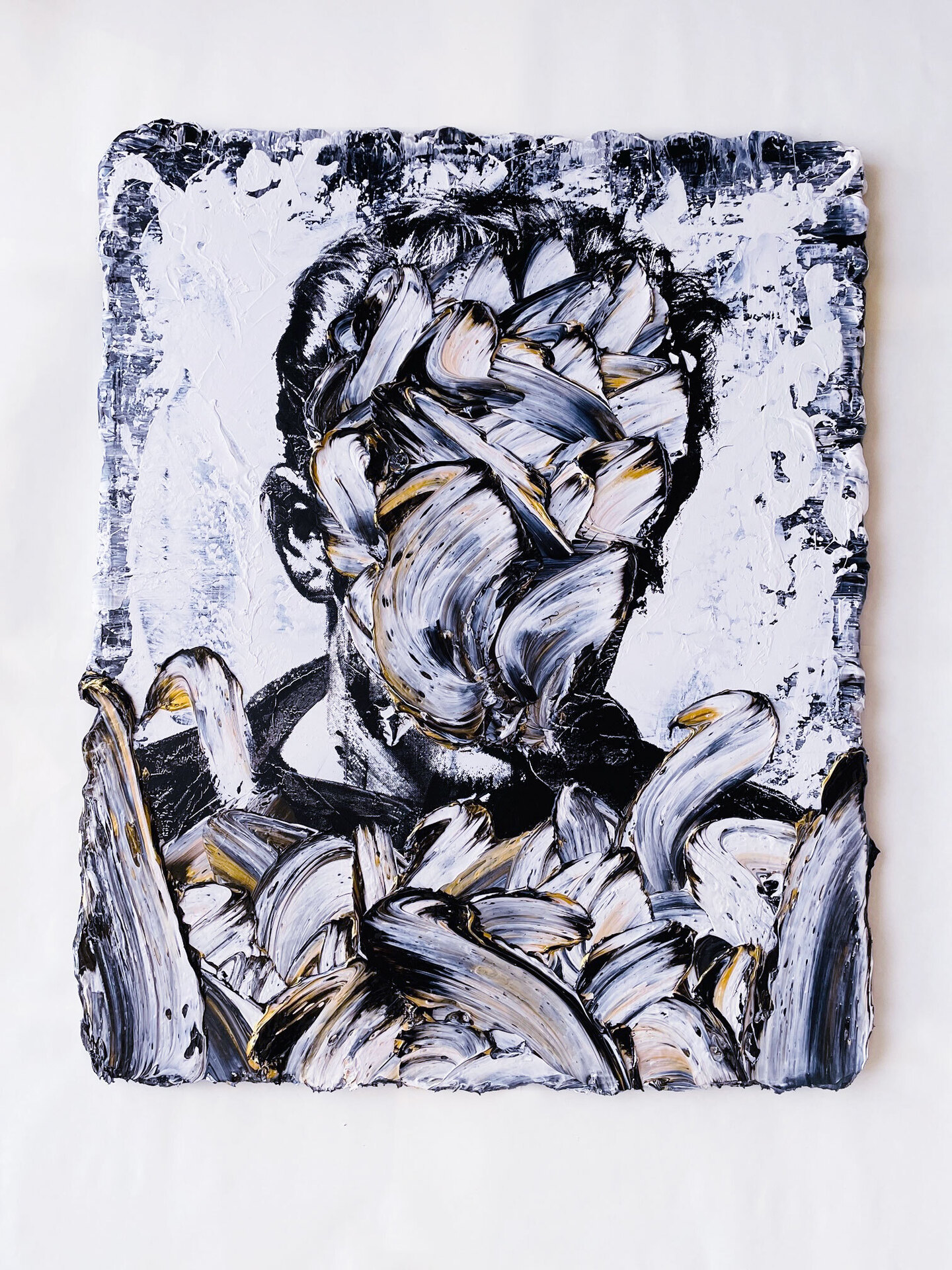 世界 30カ国以上を放浪しながら、音楽、デザイン、映像などを制作するクリエイターとして活動後、 2021年から本格的にアーティスト活動を始める。「情報社会」というコンセプトを機軸に、ミュージシャンや俳優などの著名な人物をモチーフにした抽象画を制作。人物の表情が読み取れない程に抽象化した表現によって「情報社会」における「真のアイデンティティとは何か」を問う。アートの枠を超えて、国内・海外問わず様々なジャンルのプロジェクトに精力的に関わり活動中。主な企業コラボレーションとしては、アパレルブランド「 HARE」、画材メーカー「 LIQUITEX」(共に 2022年)。常に作品にフォーカスして欲しいという想いから、国籍・性別・年齢・素顔などは一貫して非公開としている。