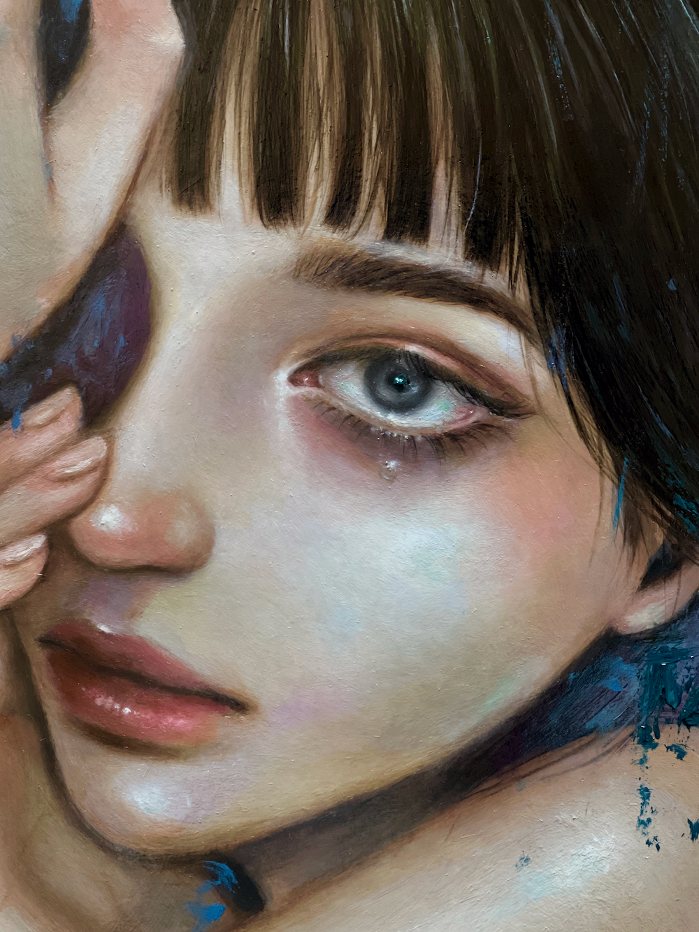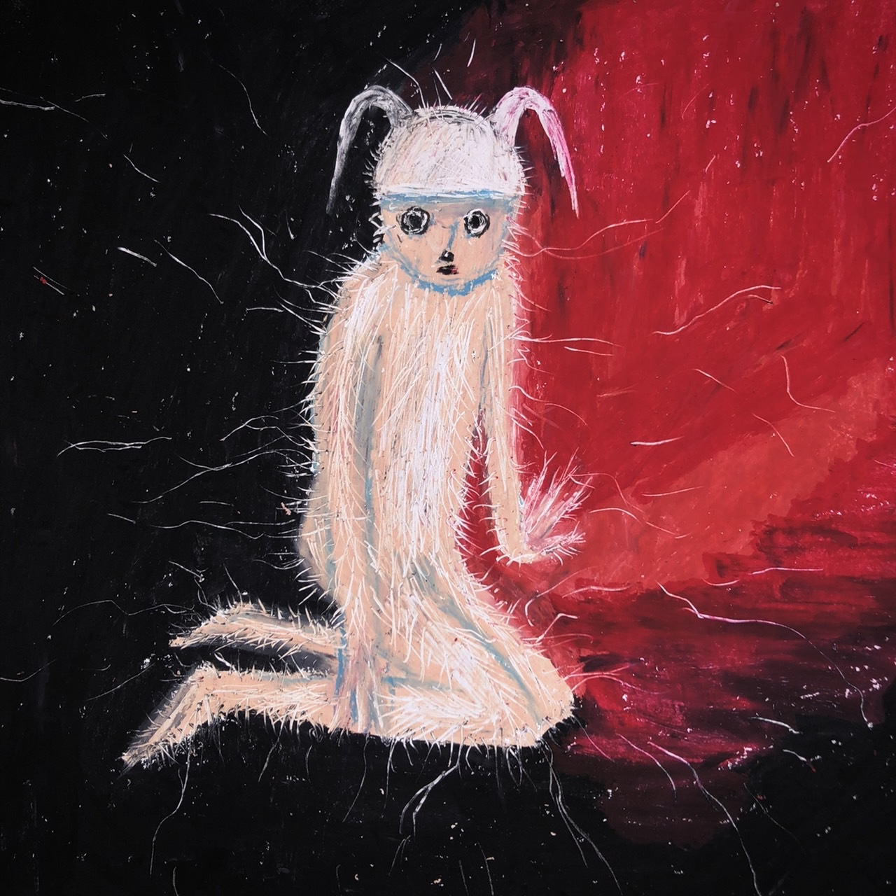 一つの作品にアクリルやクレヨン、様々な性質の画材を用いて制作する。エクスペリメンタルな表現や退廃的なものからインスピレーションを受け、それらを日々の思考と感情に共有させ作品に落とし込む。