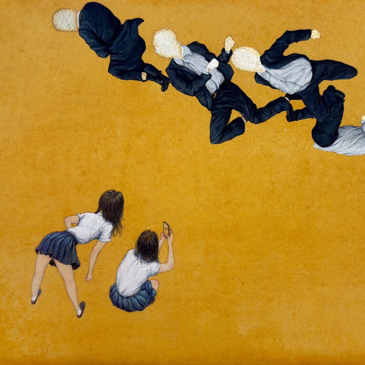 ここに描かれたスーツ姿のサラリーマンや制服姿の女子高生たちは